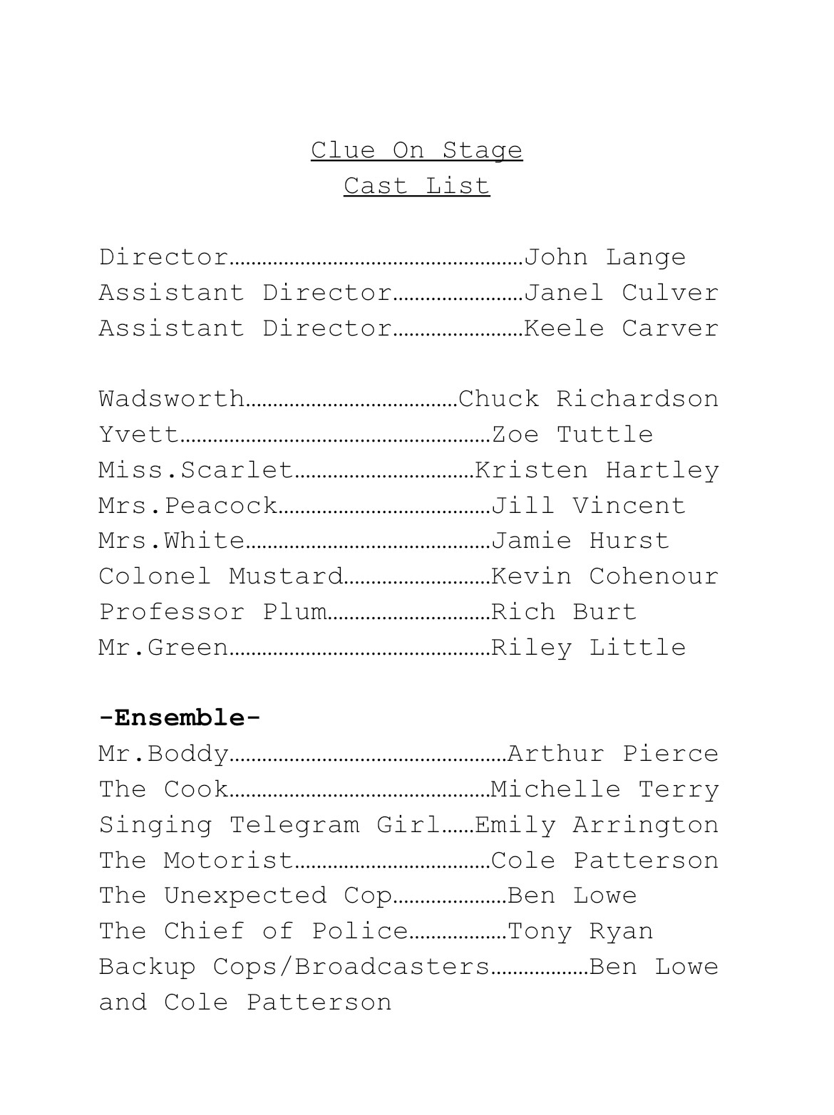Following the original audition dates, a director may hold CALL BACKS to get a second look at an actor, hear another song selection, or see how one would match-up with other actors. A Call Back does not necessarily mean that an actor will be cast, and not receiving a call back, does not necessarily mean that an actor is not cast.